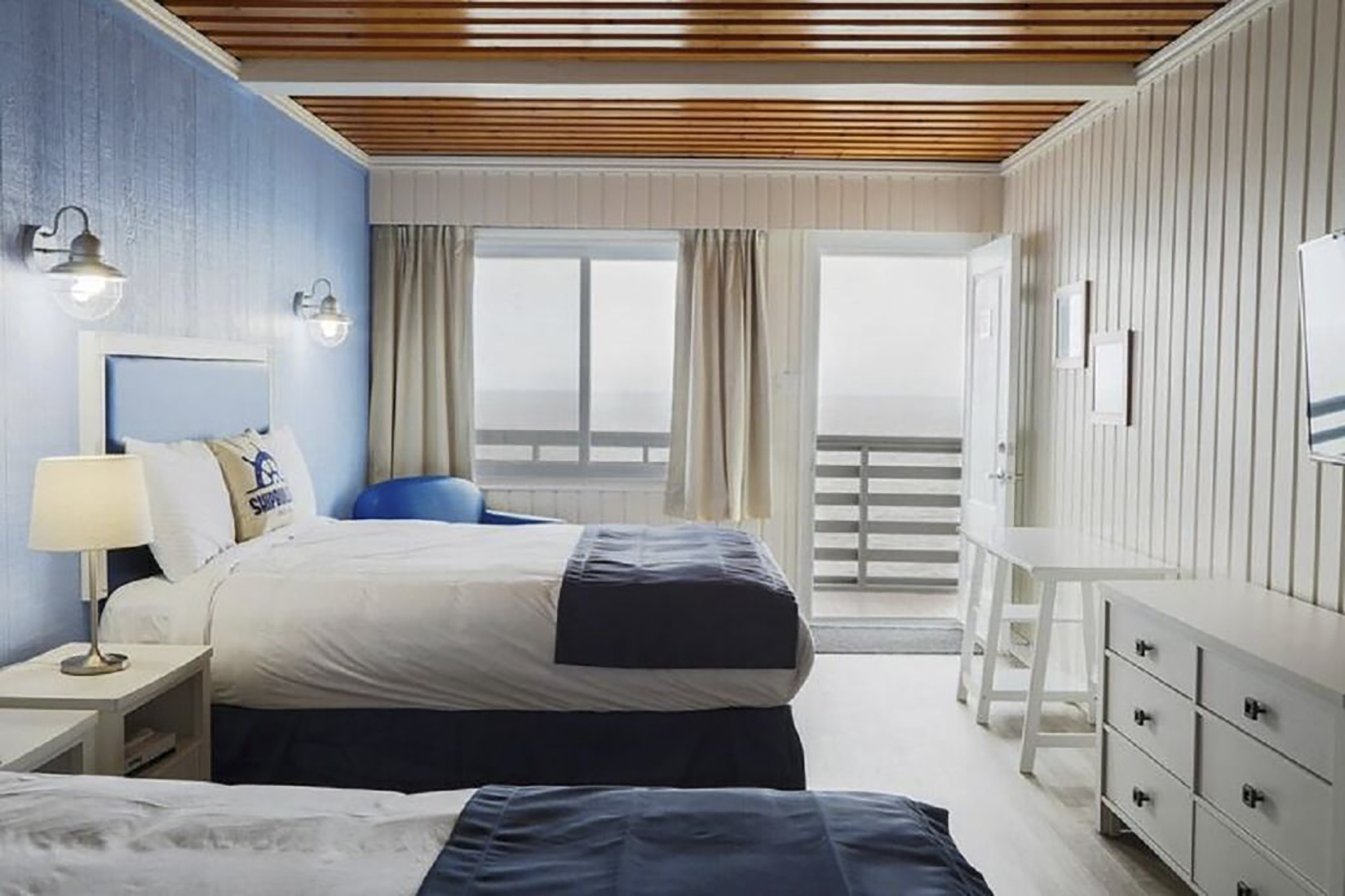 - Chambre rénovée avec deux lits doubles vue partielle sur la mer