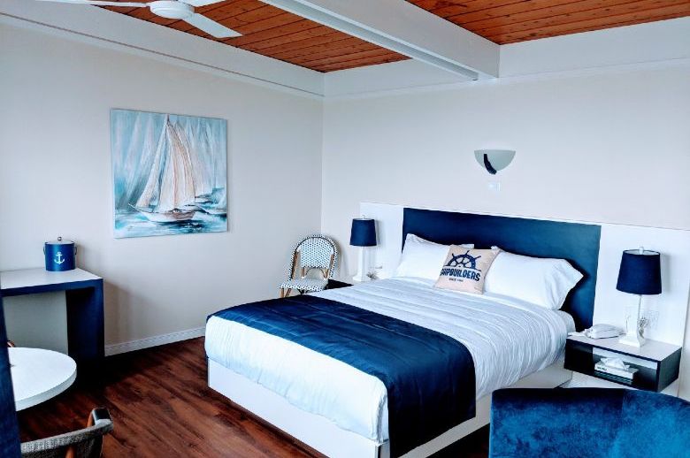 Les 40 chambres sont complètement rénovées à neuf dans un décor marin, elles possèdent une fenestration panoramique de plus de 4 mètres de largeur pour profiter de la vue sur mer. Leur dimension est de 25 mètre2 et 2 suites de 40 mètre2 sont disponible.